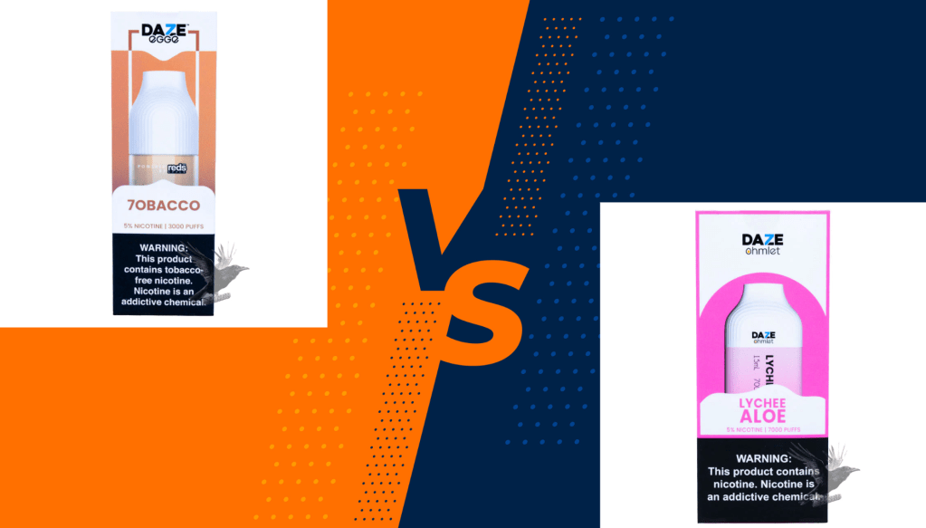 Daze Ohmlet definitely outperforms the daze Egge in terms of vapor production and flavor. However, the Egge does have a slightly stronger throat hit. But at the end of the day, both devices are still great options if you’re looking for a disposable vape that performs well.